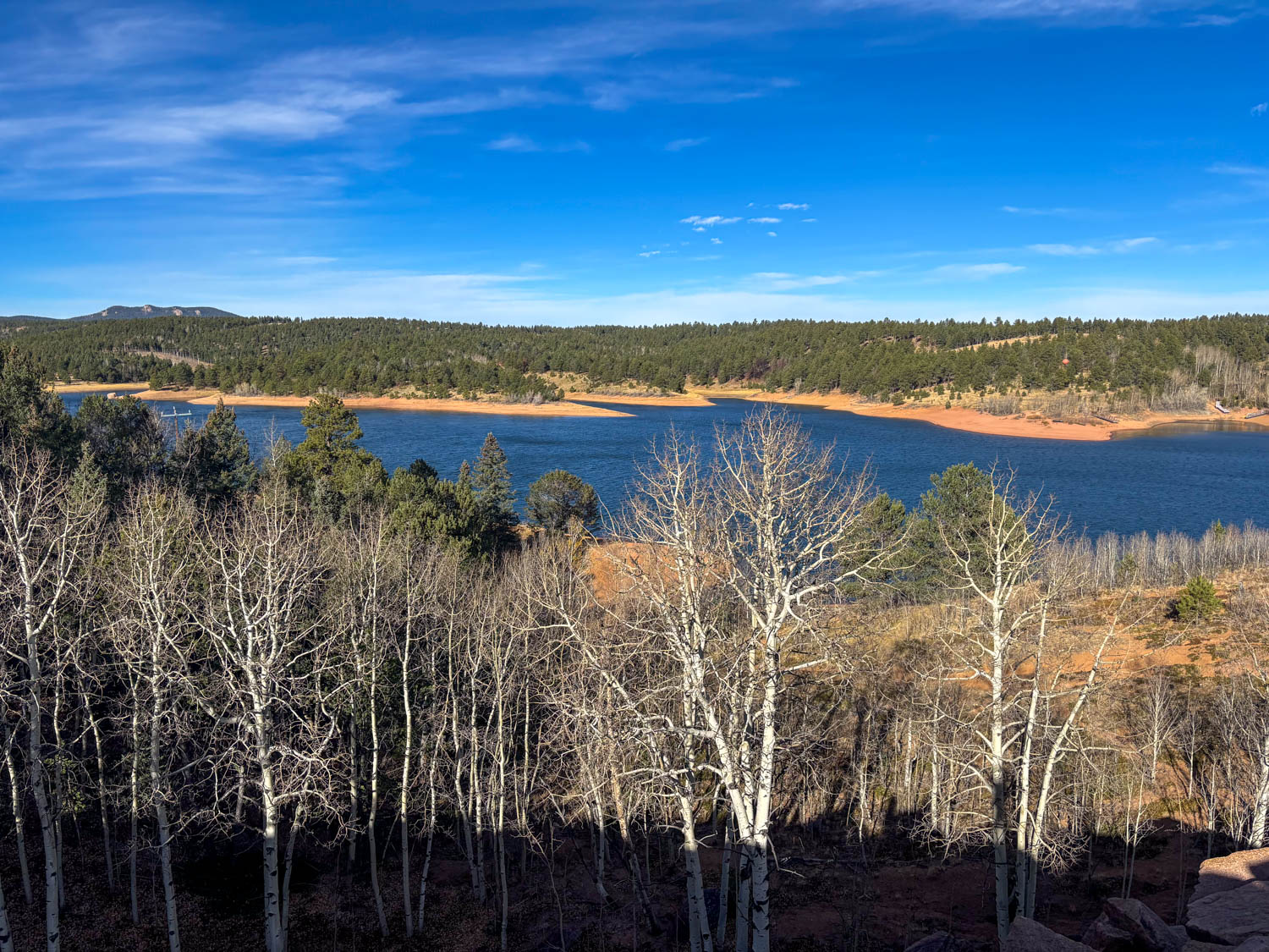 One of the incredible perks of living in Colorado is the incredible landscapes. Today’s image captures a sight that I caught while driving up America’s Mountain: Pikes Peak. It is obvious that winter has taken a toll on the white trunked trees in the foreground, while the evergreens are doing just fine. The icy blue water fills out the image surrounded by a brown sandy shore.