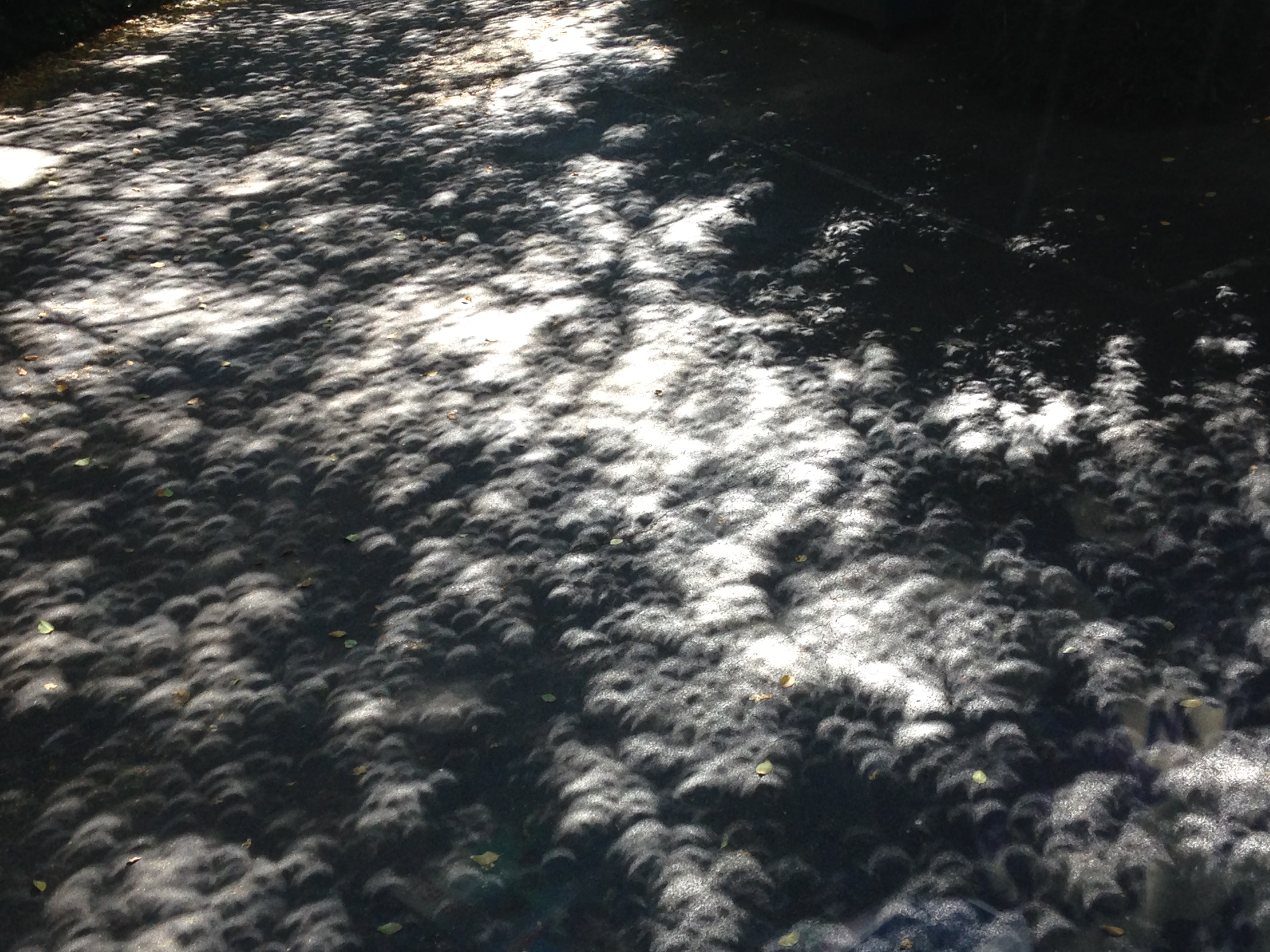 The recent solar eclipse was quite an event. We were fortunate to have the correct glasses to view the eclipse. However, we still enjoyed the shadows that were cast through the tree canopy onto the asphalt parking lot.