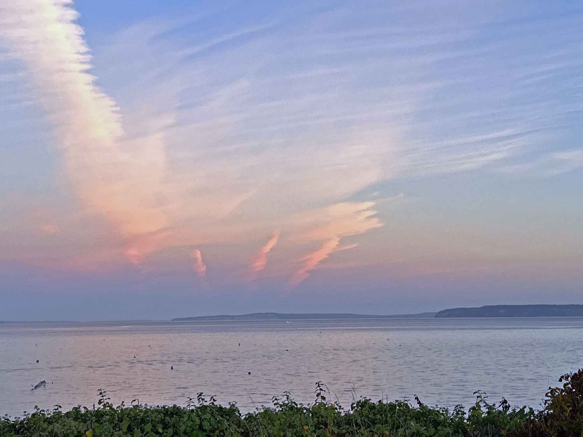We even see reminders of the Triune nature of the Lord. Looking westward as the sun rises, there are three pink-tinged clouds, different from the other clouds. One’s eye is